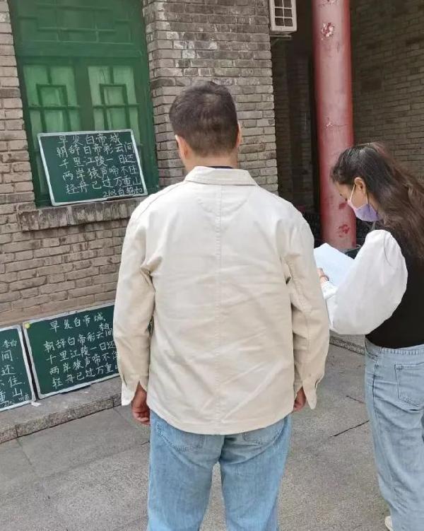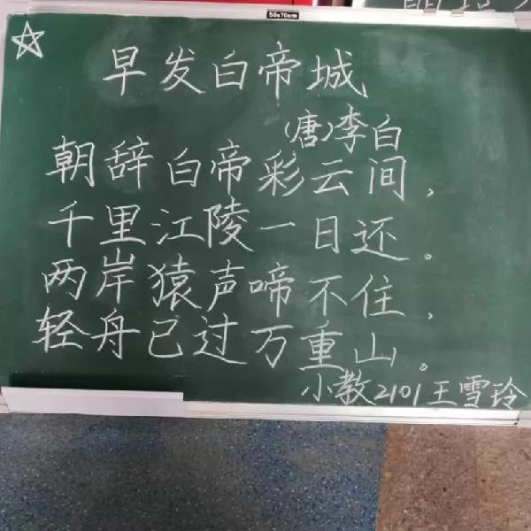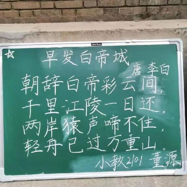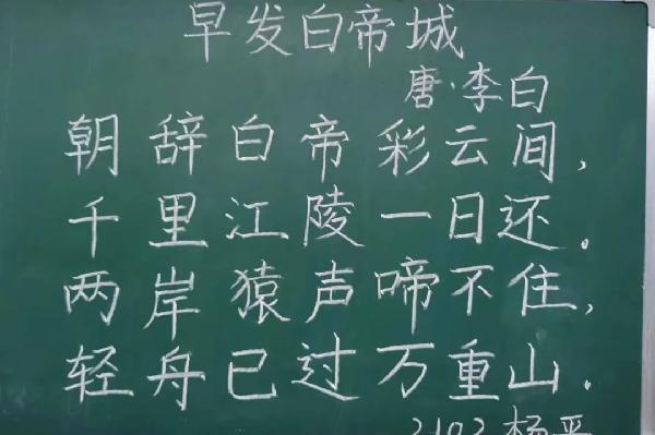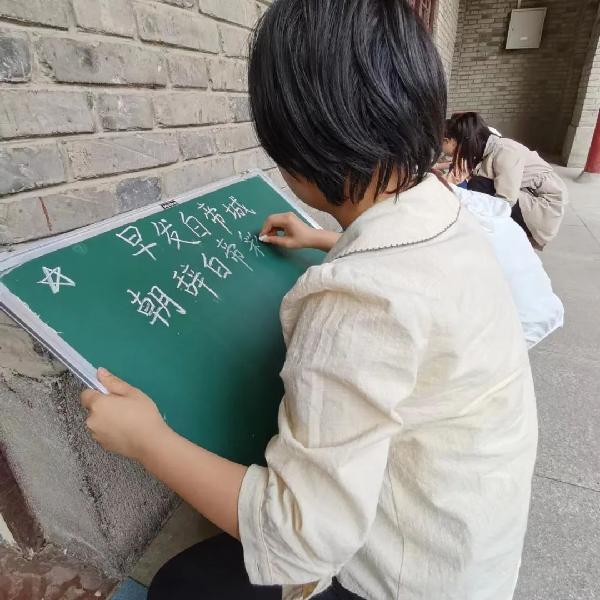 粉墨比赛的书写过程:在此次粉笔字大赛中,参赛员工在各自的小黑板上书写参赛作品《早发白帝城》。