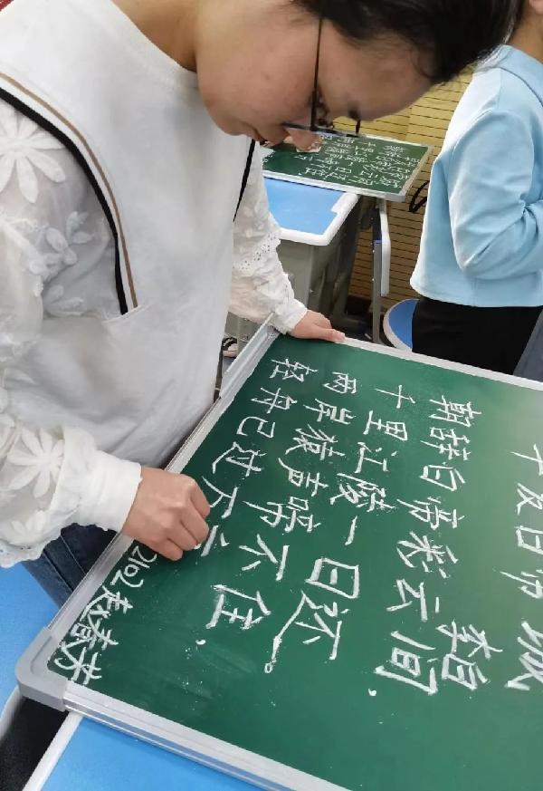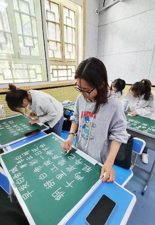 通过本次“以赛代练,粉墨师范”的粉笔字大赛,很多同学在与他人书写的比对中认识到了自己的缺点和不足,这让同学们意识到在平日的粉笔字书写中要更加地认真,才能不断地进步。