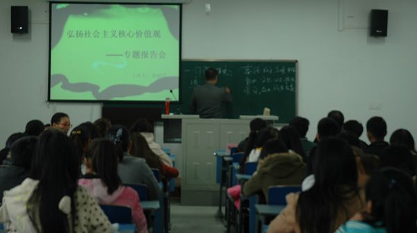 通过此次报告会,员工对社会主义核心价值观有了更深刻的理解,积极响应并坚持社会主义核心价值观,在科学发展的前提下积极投身社会主义建设。在校则努力学习专业知识,营造良的学习好氛围,引领学风建设,提升道德素质和思想境界,共同营造美好的精神家园,使精神有所寄托,灵魂有所归宿,致力于建设富强中国。