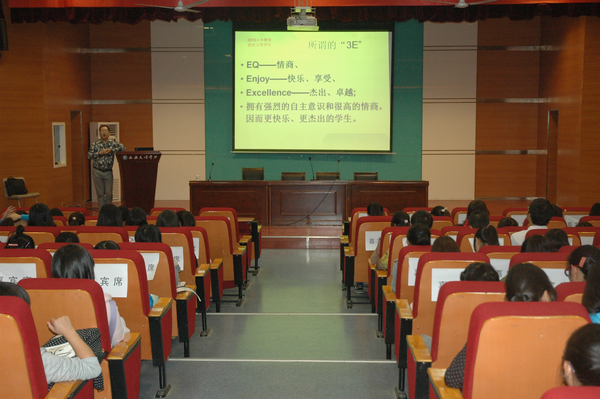 魏处长首先通过一串数字向同学们说明每一个人都是平凡但又不平庸的,每一个人都是独一无二的,让同学们树起了自信心。接着,魏处长用"什么是3E老员工","为什么做3E老员工"和"怎么做3E老员工"这三个问题贯穿讲座始终,向员工们传达了做"3E老员工"的重要性和必要性。其中穿插各种典型例子,使员工们具体的体会、了解。