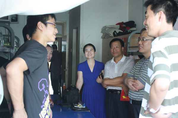 领导们到毕业生寝室,和大家一起拉家常、话别离、聊感受。每到一个员工寝室,张处长都高兴地祝贺大家顺利完成大学四年的学业,回忆了四年的美好的大学时光,并对员工四年的学习生活给予了充分的肯定,领导还耐心询问了各位毕业生的就业去向,同时也表达了不舍之情和对大家的牵挂。领导和同学们互道珍重、依依惜别。