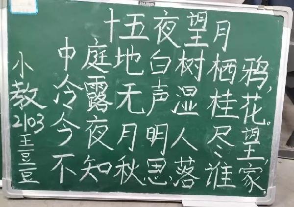 而且通过一笔一划的写这首诗我成功的学习到了“家”的笔画,并且在经过多次的写字之后,我觉得自己的粉笔字有了一定的提升。