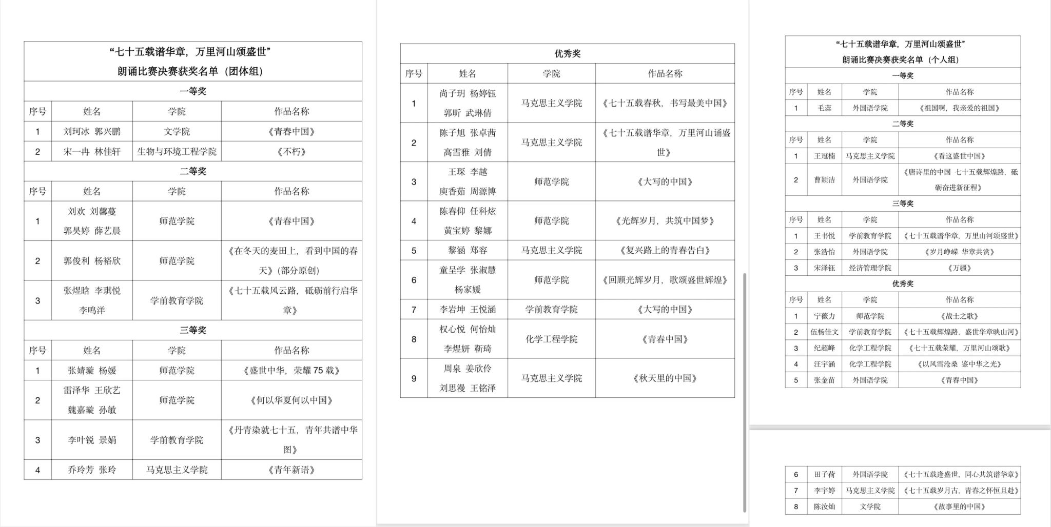 此次比赛中参赛员工经过自己认真准备于精彩展示,呈现出了最好的自己,经过各个评委老师的点评与筛选,现将本次朗诵比赛结果公布如下: