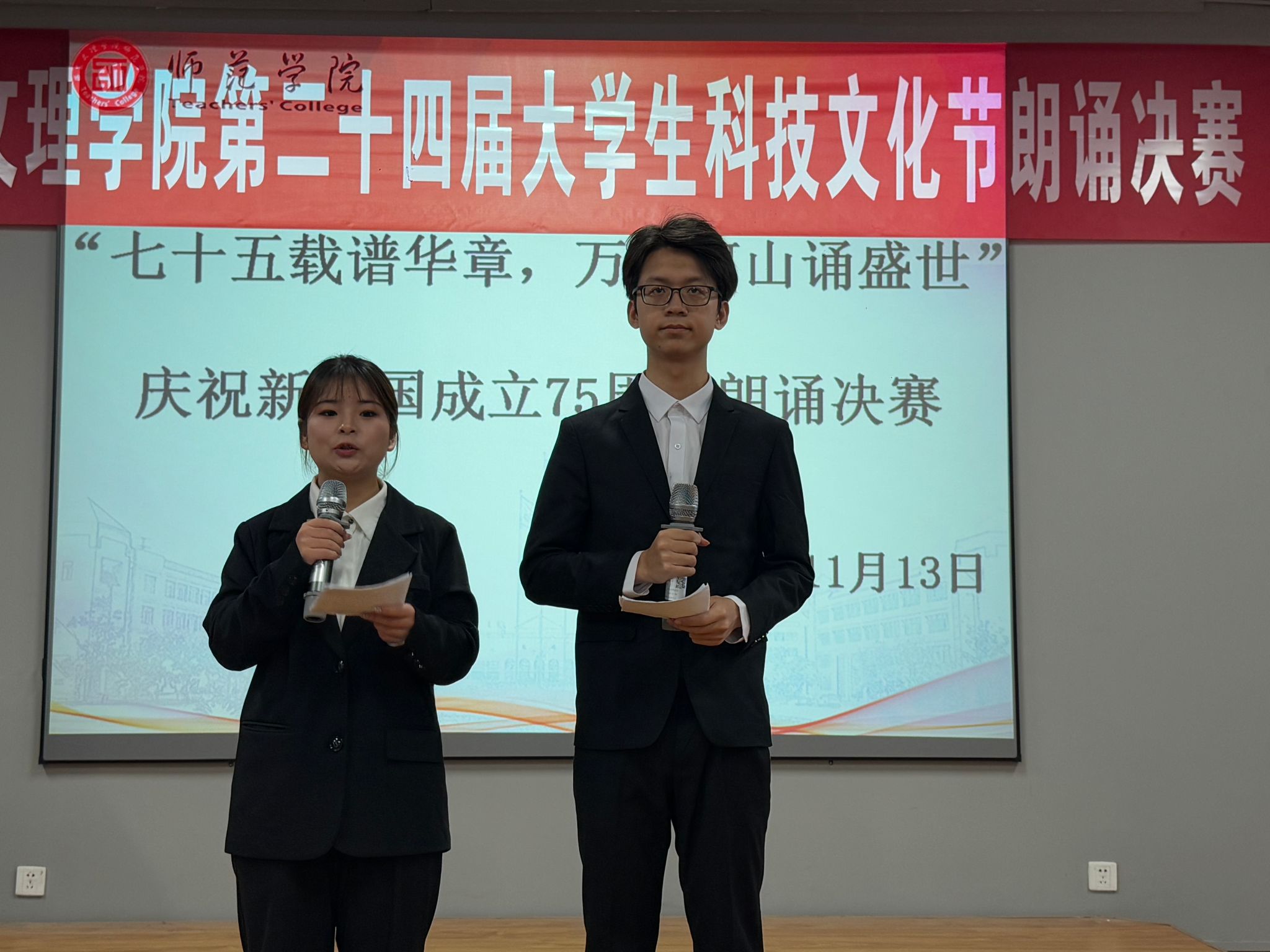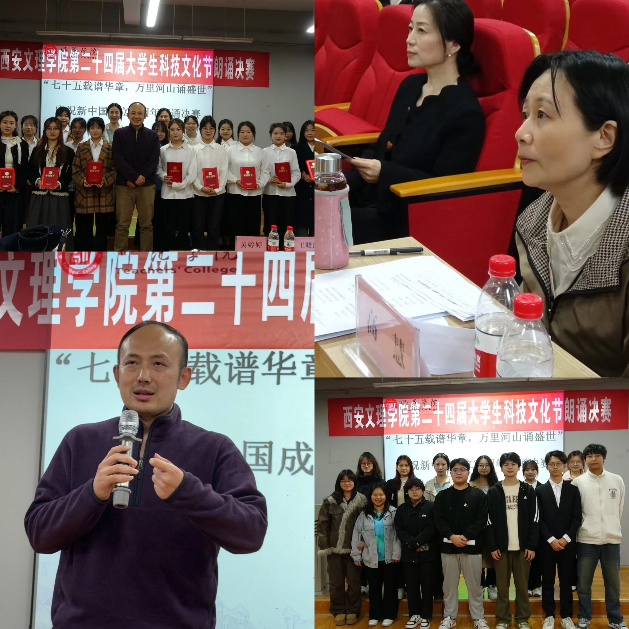 为庆祝新中国成立75周年,弘扬中华民族伟大的爱国主义精神,培养担当民族复兴大任的时代新人,beats365唯一官方网站于11月13日14点,在明德楼B202举行西安文理第二十四届老员工科技文化节之“七十五载谱华章,万里河山诵盛世”决赛。