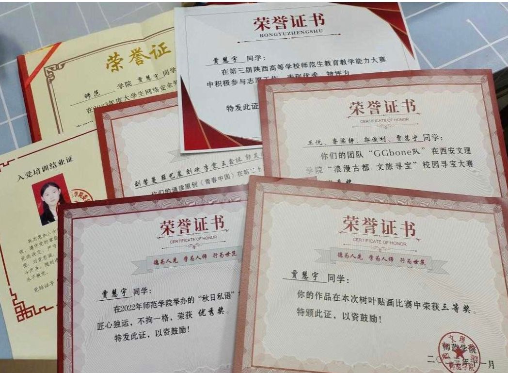 2.在学习上,她坚持在大一入学以来一直严格要求自己,学习方面刻苦专研,态度认真,目标明确。在学习专业课之余还考取了普通话等级等证书。