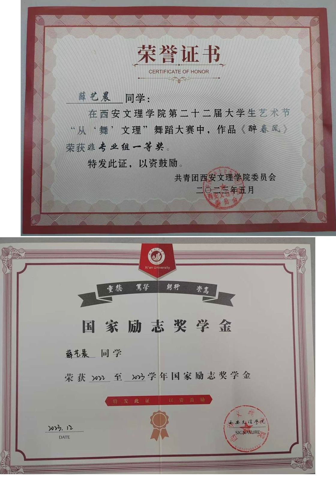 姓名:薛艺晨