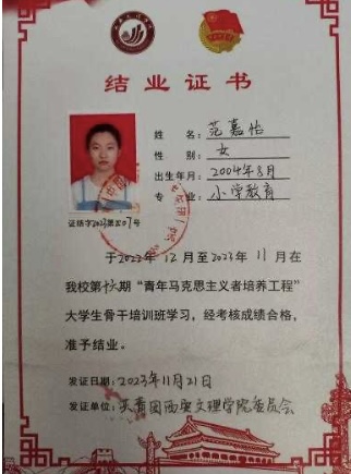 在思想上我积极向上、遵纪守法、团结同学、坚持原则、热爱祖国、拥护中国共产党,并顺利在青马班结业。不断学习新思想,争做时代好青年。