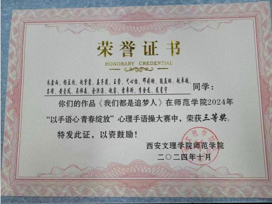 4.2024年10月“以手语心,青春绽放”心理手语操大赛“三等奖”