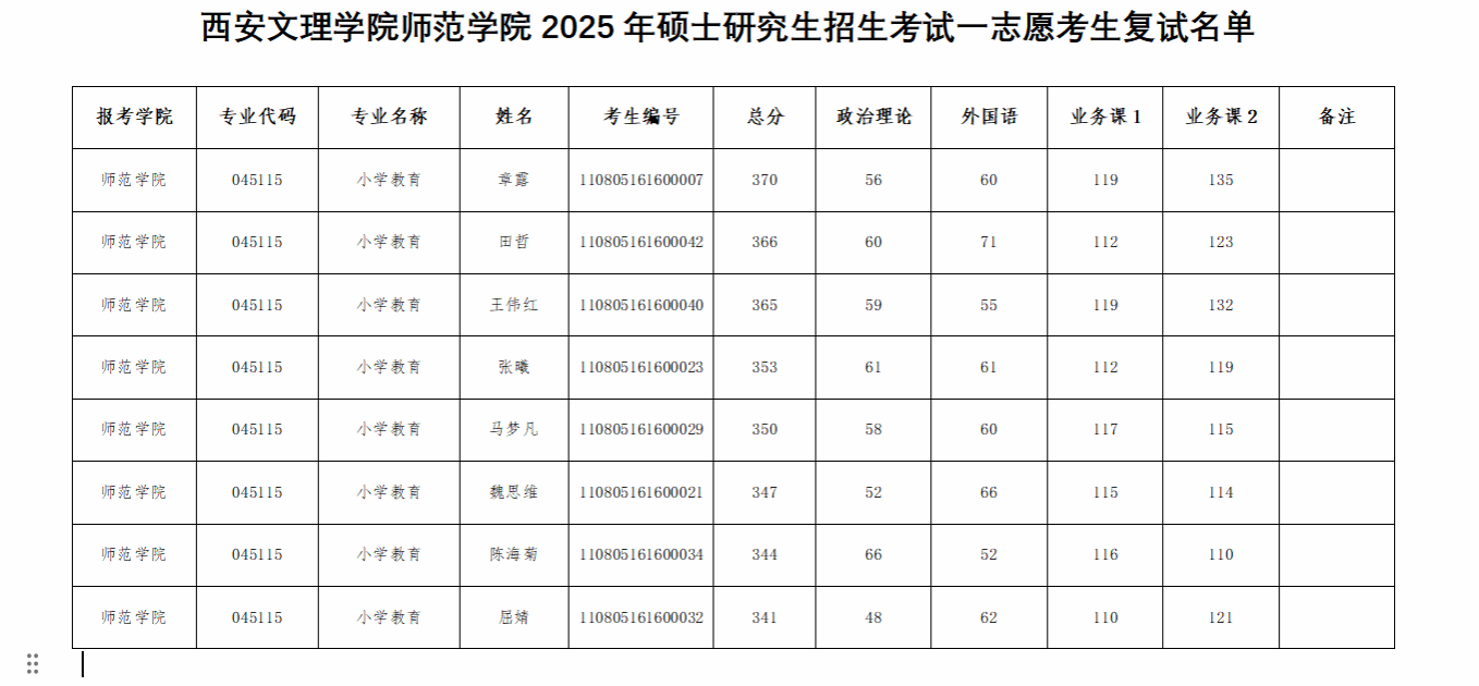 、进入复试的一志愿考生名单