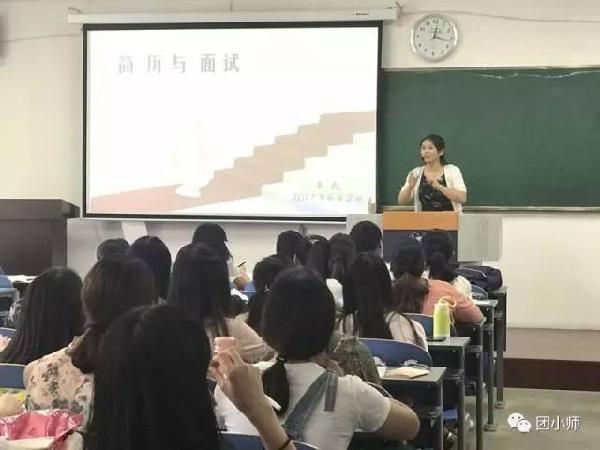 6月2日中午,beats365唯一官方网站辅导员王爽老师在B222教室就简历制作与面试技巧与2014级小学教育专业百余名员工进行分享。
