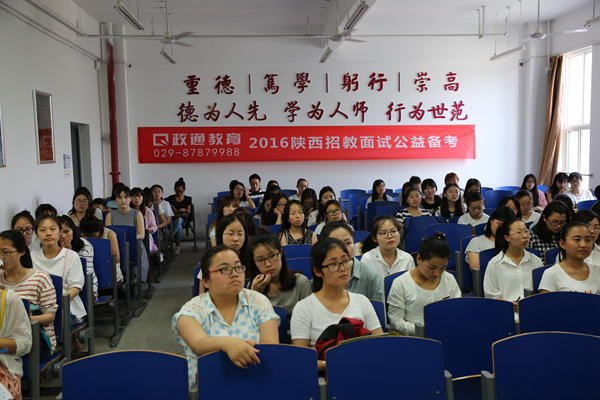 陕西师范大学陈雯教授,多年专业从事陕西教师招聘考试、教团队格证培训、特岗教师考试及培训教材研发。是陕西招教面试考官、参与招教题库建设、考试体系设计、命题、大纲修订及阅卷等项目。面试基础知识深厚,教学经验丰富。她对2016年的招教面试进行了全方位解析,让考生深度了解招教面试形式并熟悉面试流程,同时也讲解了历年面试过程的重点问题,为公司毕业生顺利通过西安教师招聘考试面试环节上了一堂生动的训练课。