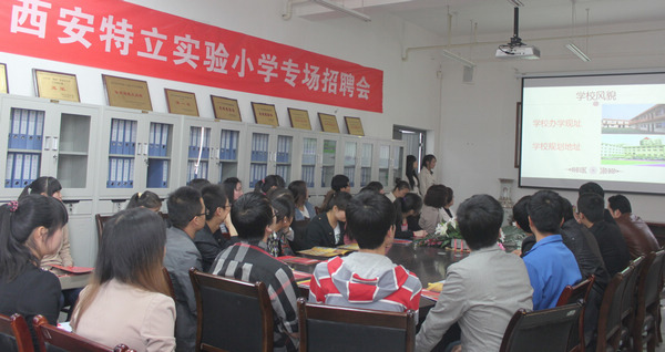 3月28日下午,西安特立实验小学专场招聘会在教育公司会议室召开,本次招聘会主招小学数学、语文教师。教育公司党总支副书记张书记主持召开此次招聘会,参加此次招聘会的有来自教育公司小学教育和初等教育专业毕业生的30余人。会议开始由特立实验小学董事长介绍了公司的详细情况,还有招聘的条件。随后应聘员工对此次招聘提出了自己的疑问,董事长都做了详细的解答,会后应聘生都积极踊跃的报名,会场气氛其乐融融。