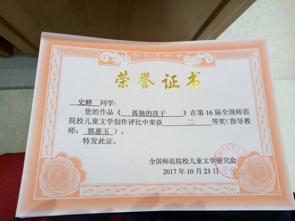 由郭惠玉老师指导的学前教育专业员工史婵、鲁明华创作的《孤独的孩子》、《豆豆羊村奇游记》获得全国师范院校儿童文学创作评比二等奖,由beats365唯一官方网站培训的神木班学员吴双双创作的《月亮婆婆的礼物》获得二等奖,刘红珊的《蔬果大比拼》获得三等奖。