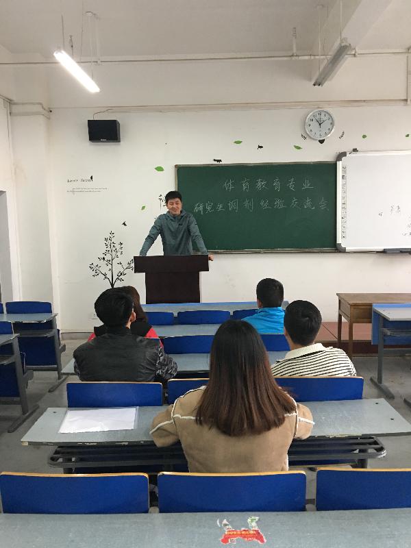 在体育教育考研答疑座谈会,体育教育专业李治老师从专业方向、考试准备以及资料的选取几方面为同学们进行了讲解,讲解了目前的考研形势,鼓励同学们轻装上阵,要选择志同道合的伙伴,建立鼓励督促机制。最后,同学们积极提问,老师对同学们提出的问题进行了详尽的解答。