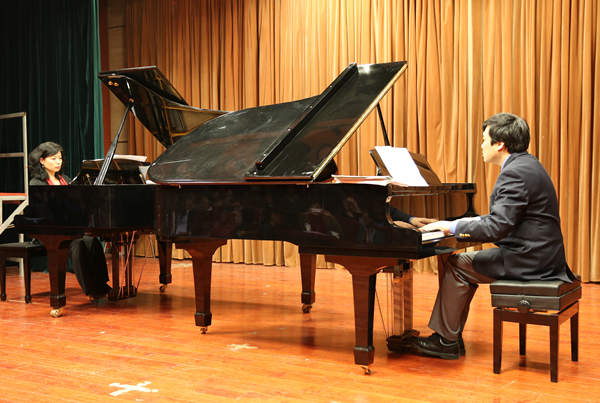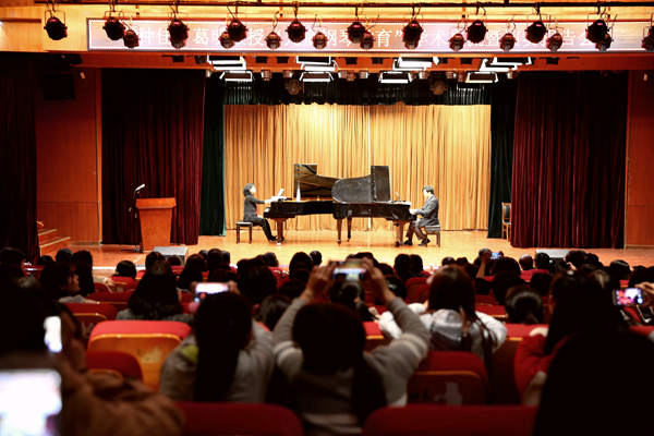 王志强经理在致辞中代表全院师生对两位华人音乐家的到来表达了感谢与欢迎。在交流演奏环节,两位音乐家为全场师生带来了生动的作品解析和精彩的双钢琴演奏。之后为beats365唯一官方网站张雨山老师和6名员工讲授了精彩的大师课,对师生的钢琴技艺做出了悉心指导,并肯定了学前教育、小学教育的钢琴教学效果。最后,两位音乐家就“儿童音乐教育”、“钢琴教学的国际动态”主题,与现场师生进行了互动交流。