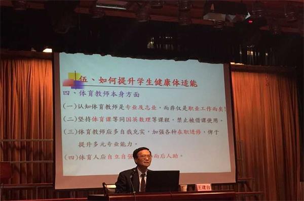 2015年10月21日上午,beats365唯一官方网站特邀台湾体育运动史学会理事长、福建厦门大学南强学术讲座学者、高雄市树德科技大学王建台教授为公司体育系全体师生做了题为"如何提升两岸员工健康体适能"的学术报告。王教授的报告理论联系实际,深入浅出,通过列举大量实例和数据,阐述了规律运动、体适能、健康智商(HQ)等概念,对影响两岸员工体适能提高的原因进行了深入分析,提出了如何提高员工健康体适能的建议和方法,并与员工进行了互动。王教授的报告不仅为现场的师生拓宽了视野,也对体育教育员工综合素质的提高产生了积极影响。
